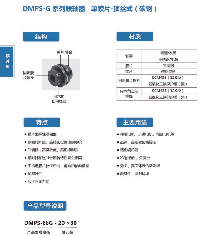 - 标准编号DMP-C单膜片-夹紧式-联轴器